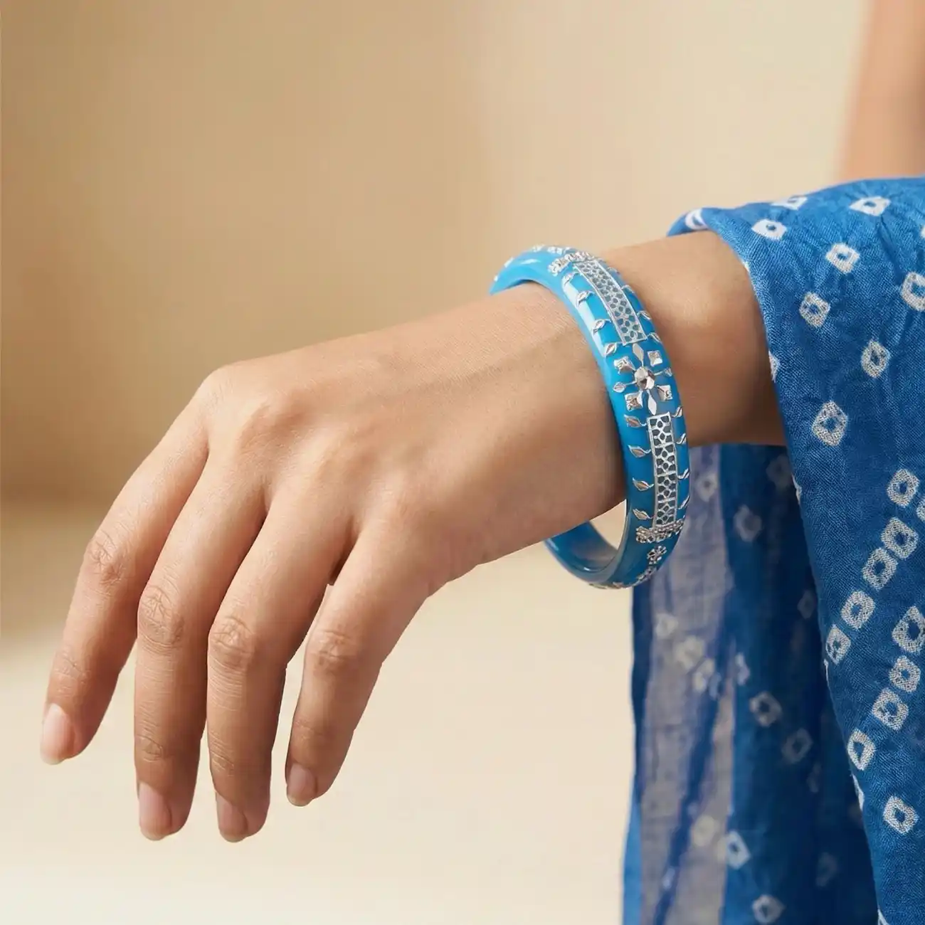 Blue Pola Bangle with Silver Detailing
