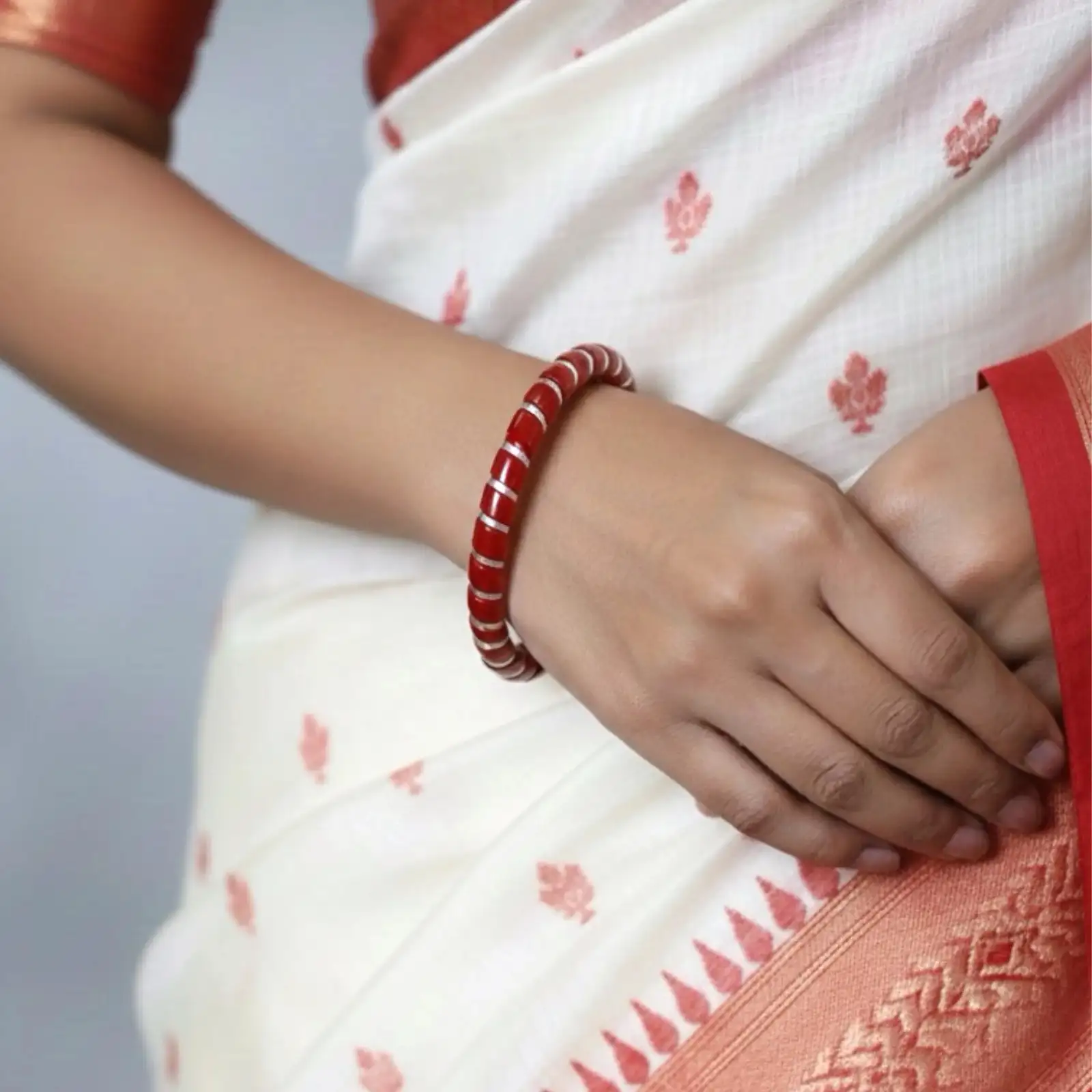 Red Pola with Silver Work (Pair)