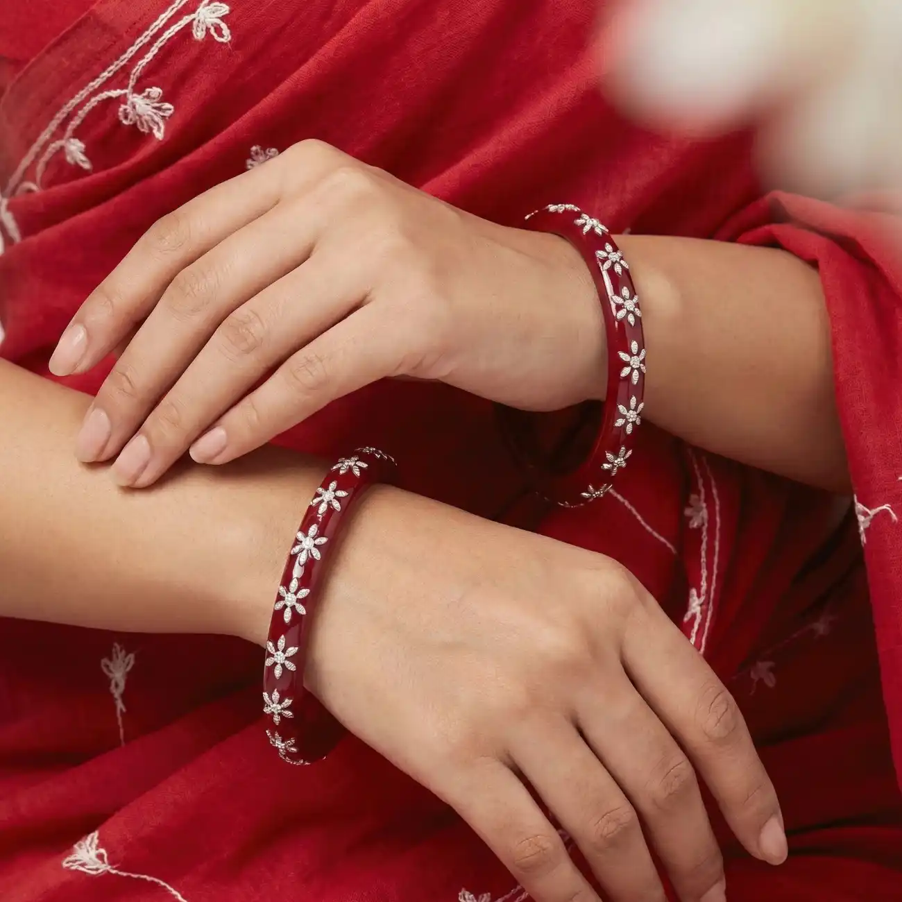 Ruby Red Pola Floral Bangles (Pair)