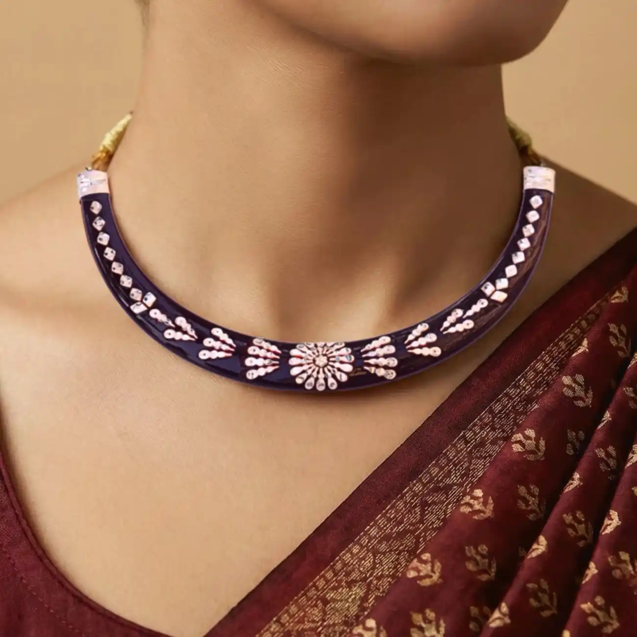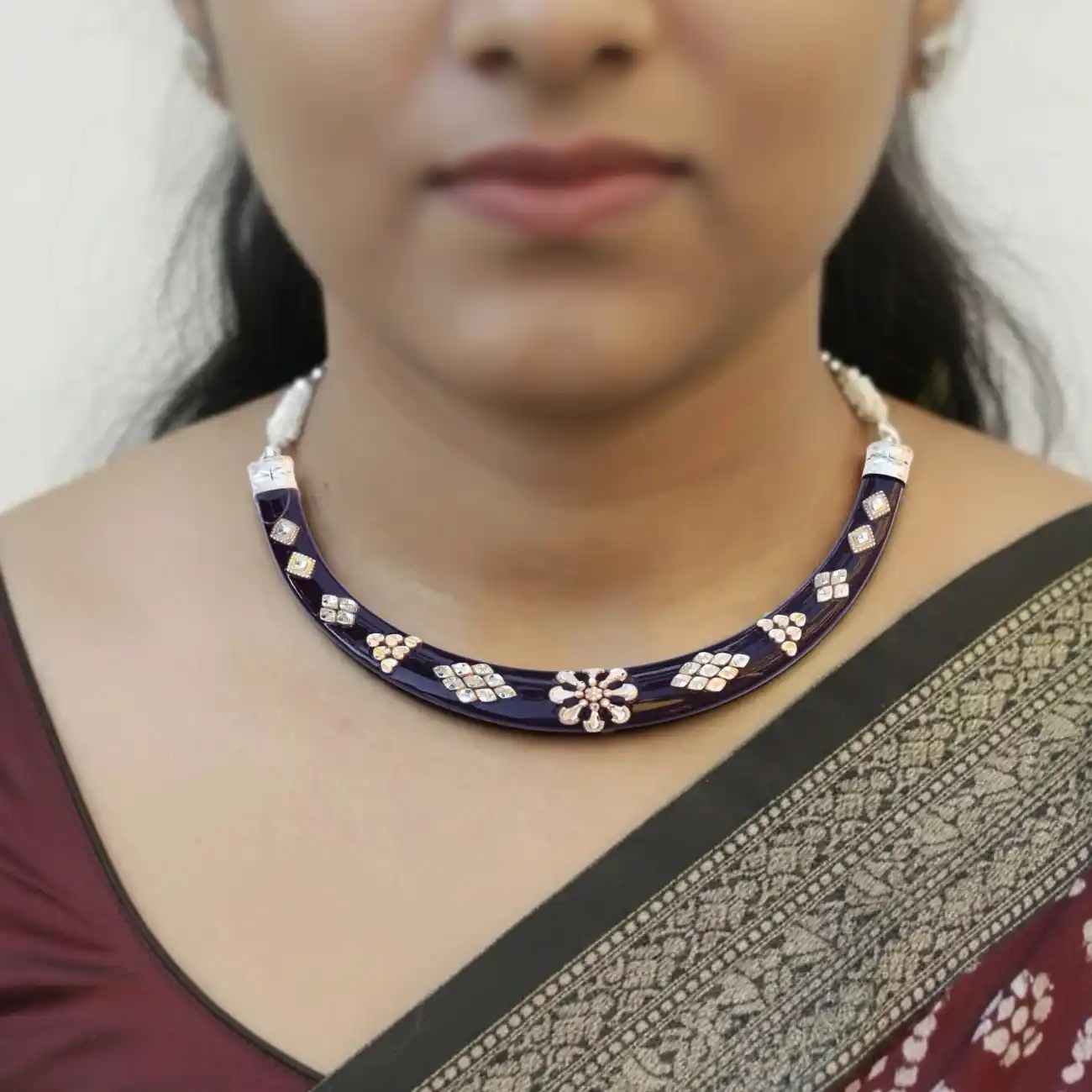 Maroon Silver-Work Pola Neckpiece
