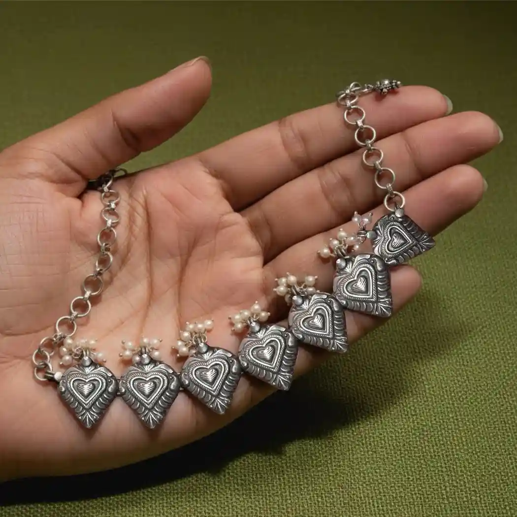Oxidized Silver Heart Motif Choker
