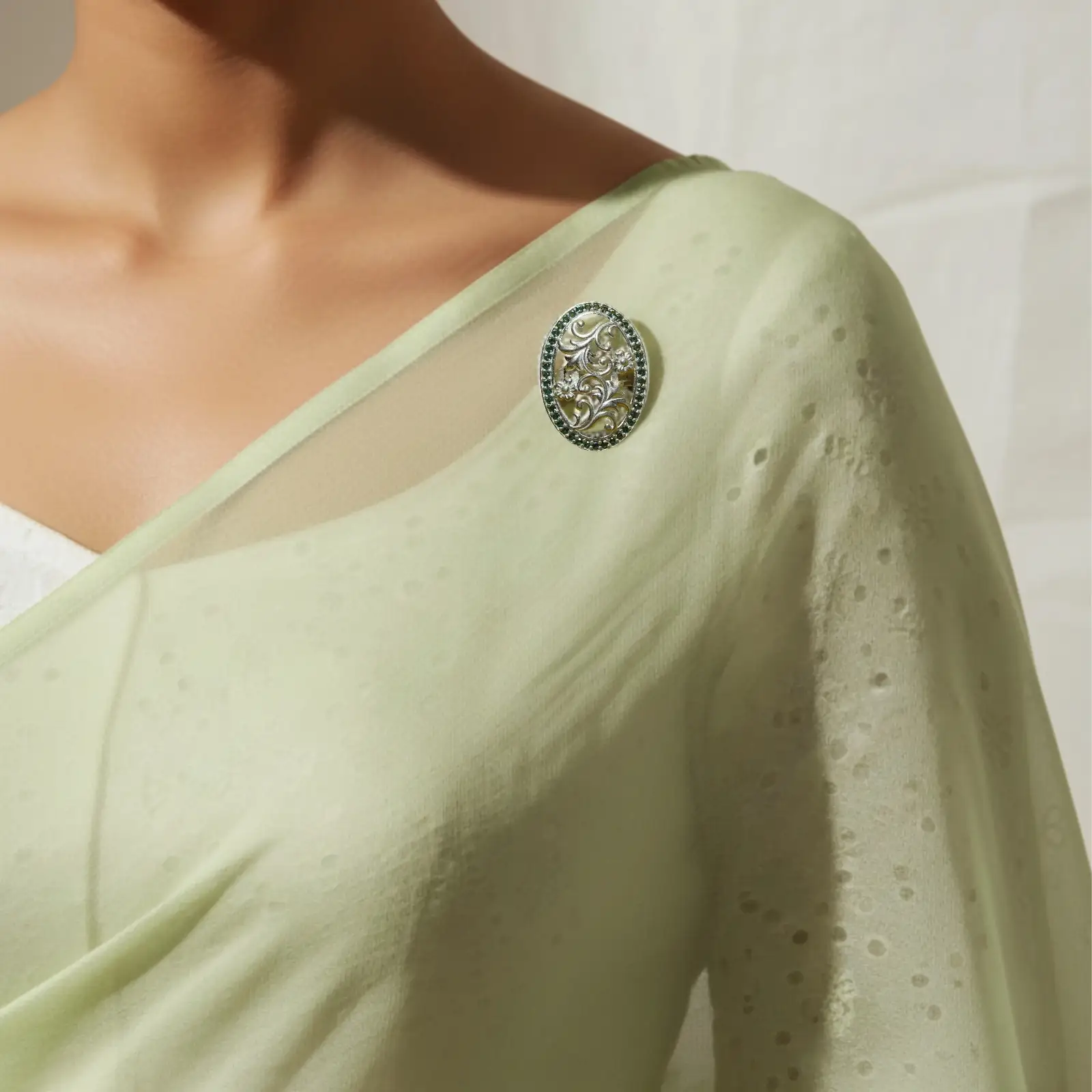 Silver Oval Floral Brooch