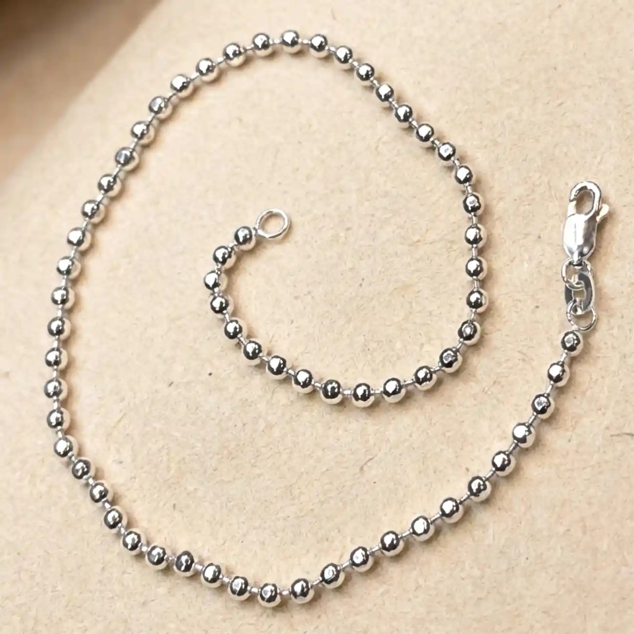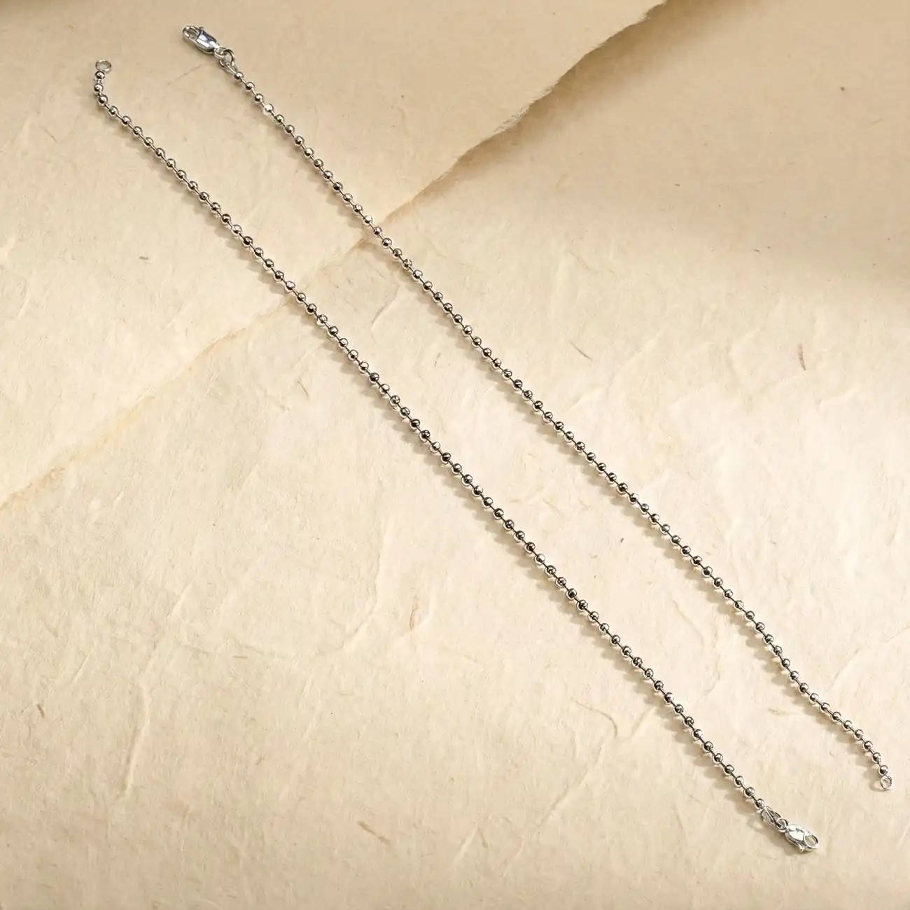 A timeless pair of silver payels crafted with evenly spaced, polished bead links that wrap gracefully around the ankle. The clean, rhythmic design off...