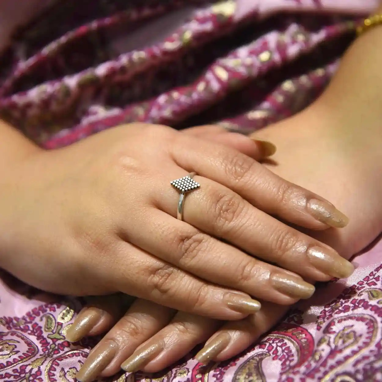 Product Name: Dot Square Silver Ring Jewellery Type: Finger Ring Design Motif: Square top with dotted texture Occasion: Everyday wear, workwear, gifting, casual celebrations A contemporary silver ring featuring a raised square top detailed with a fine textured dot pattern. The clean geometric design adds subtle depth and character while maintaining a minimal, refined look. Lightweight and versatile, this ring is perfect for everyday wear or effortless styling with layered jewellery. Dress pairing: • Indian wear like cotton kurtas, block-print suits, handloom sarees, or Indo-fusion outfits • Western styles such as casual dresses, linen shirts, neutral tops, or office-wear ensembles • Pairs beautifully with minimalist jewellery and muted tones for a clean, modern finish