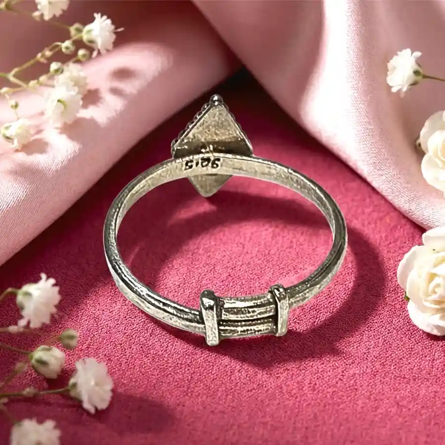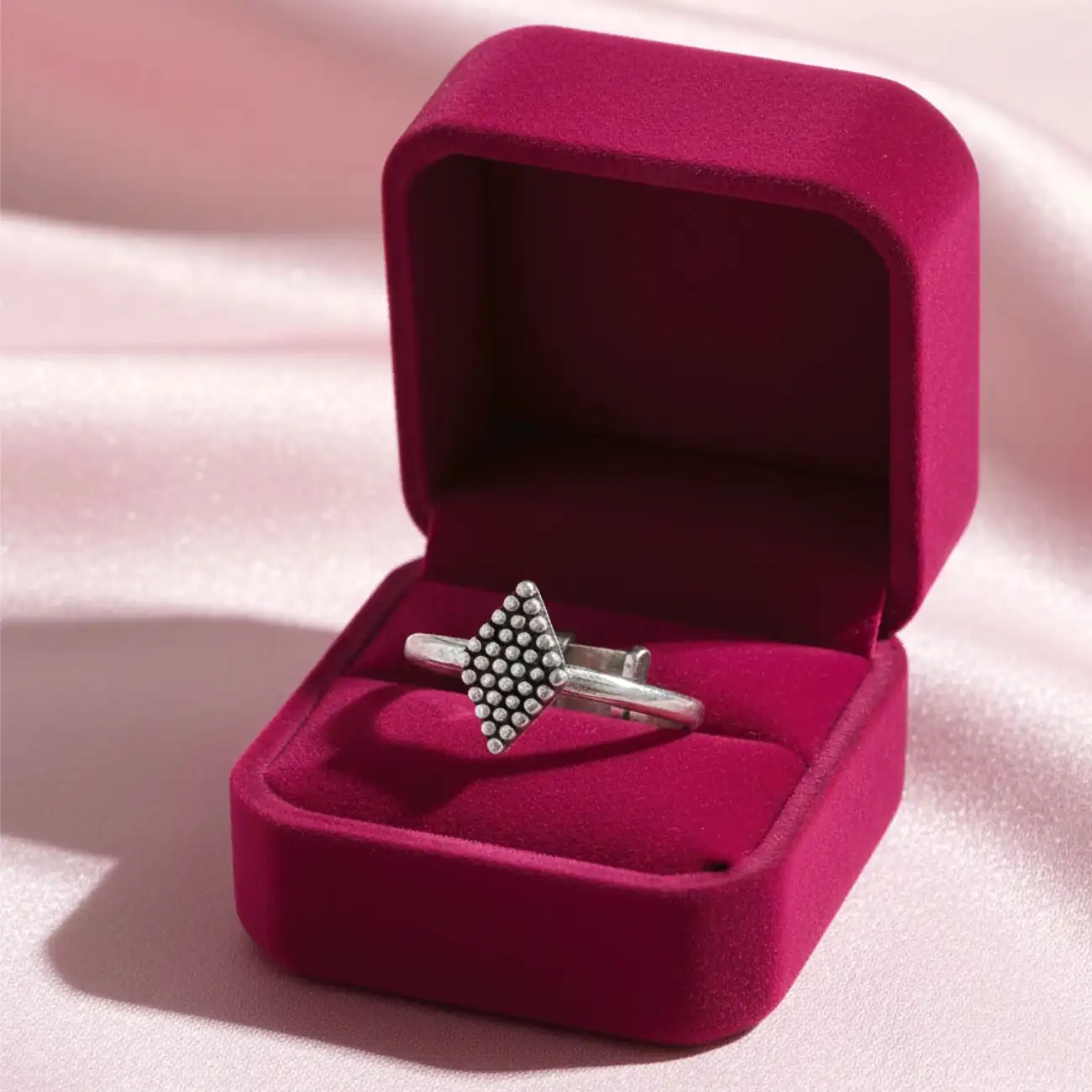 Product Name: Dot Square Silver Ring Jewellery Type: Finger Ring Design Motif: Square top with dotted texture Occasion: Everyday wear, workwear, gi...