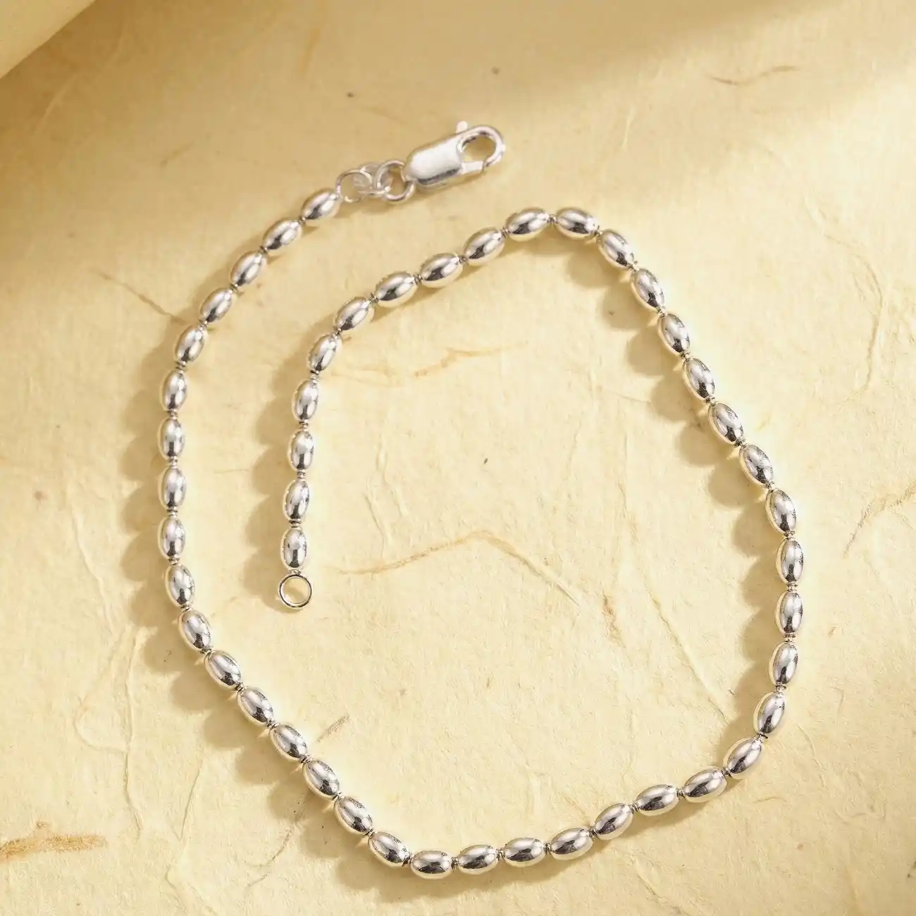 A graceful pair of silver payels crafted with smooth, oval bead links that create a soft rhythm around the ankle. Lightweight yet elegant, the design reflects subtle shine and fluid movement, making it perfect for everyday wear as well as understated festive looks. The minimal silhouette ensures comfort while adding a refined traditional touch to your step. Dress pairing: Cotton sarees, linen sarees, and handloom drapes Ankle-length kurtas, palazzos, and straight-fit pants Summer dresses, ethnic skirts, and Indo-western outfits Complements soft pastels, earthy neutrals, whites, and warm tones beautifully