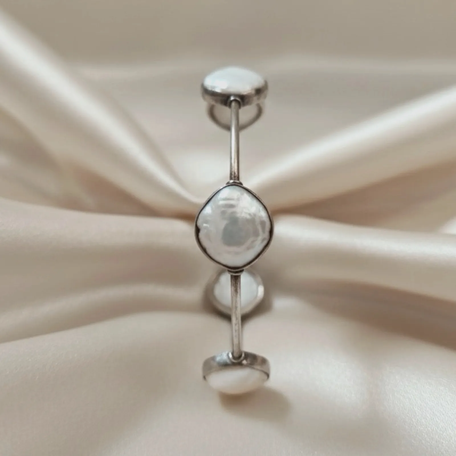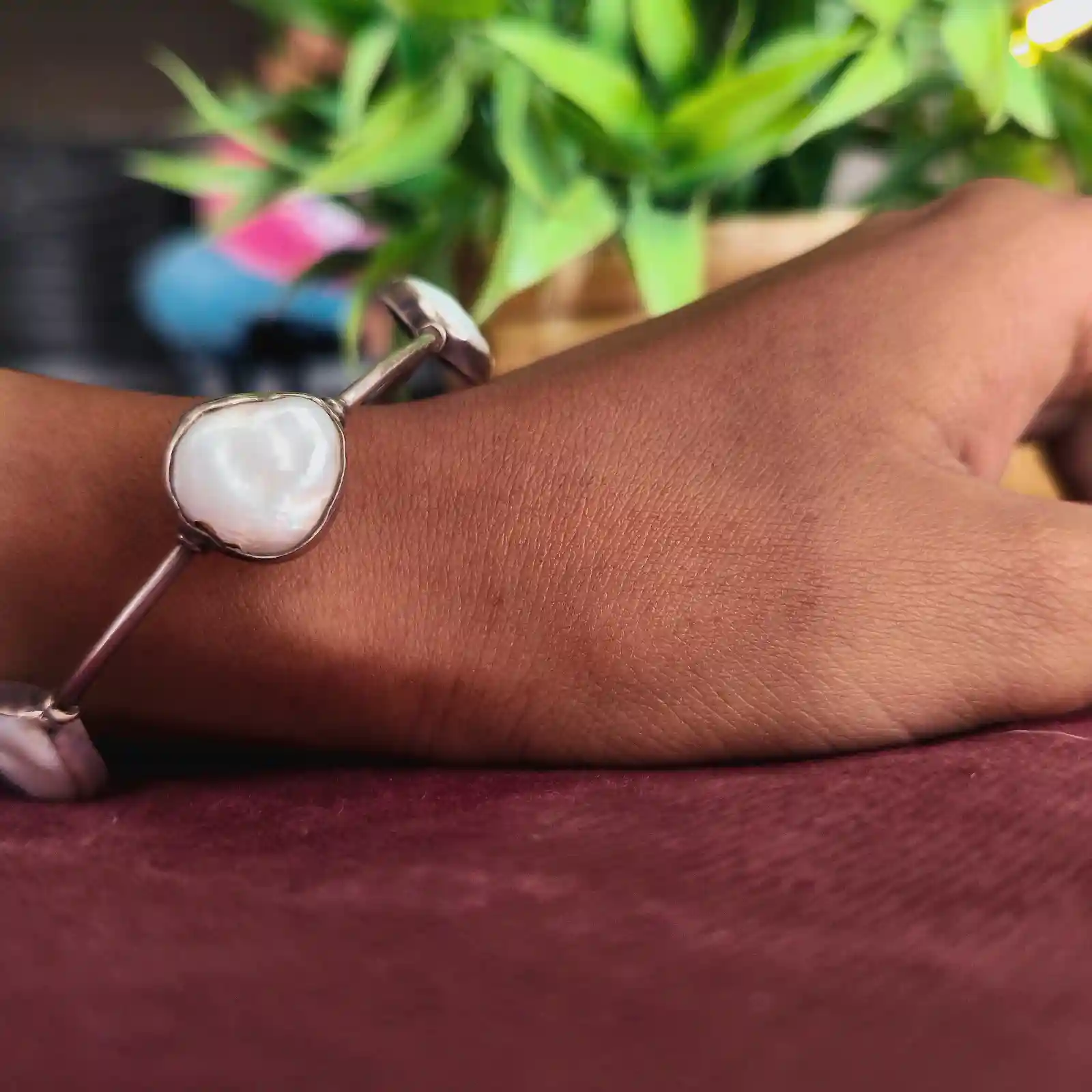 This elegant bracelet features smooth sky-blue stones set in a clean, minimal silver-tone frame, creating a fresh and calming aesthetic. The soft pastel shade adds a touch of serenity, while the slender band keeps the design lightweight and graceful. Perfect for daily wear, brunch outings, or soft festive looks, it pairs beautifully with pastel sarees, floral kurtis, summer dresses, and light-toned Indo-Western outfits for an effortlessly refined touch.