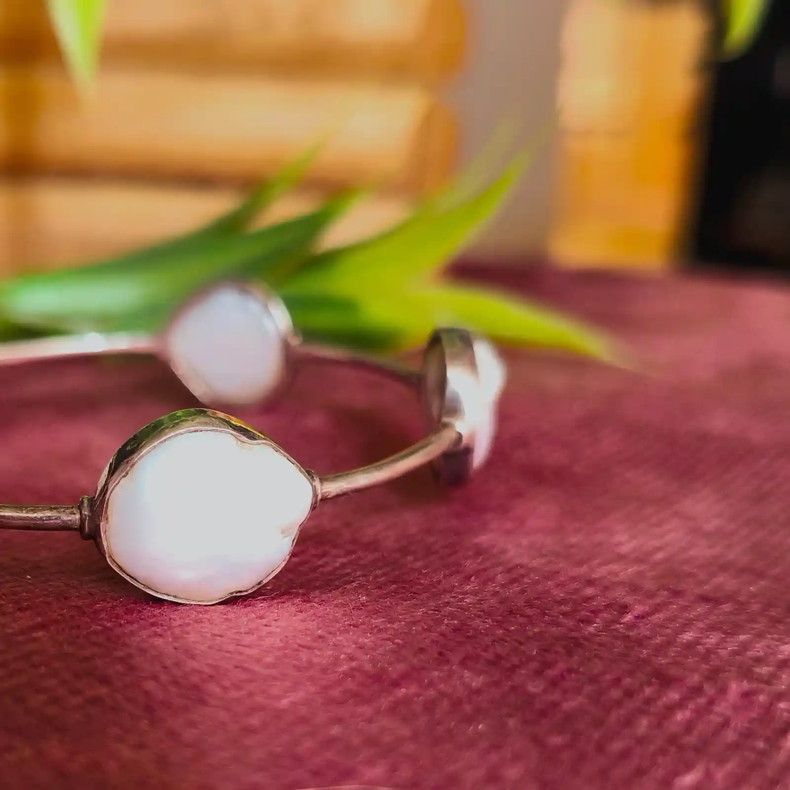 This elegant bracelet features smooth sky-blue stones set in a clean, minimal silver-tone frame, creating a fresh and calming aesthetic. The soft past...