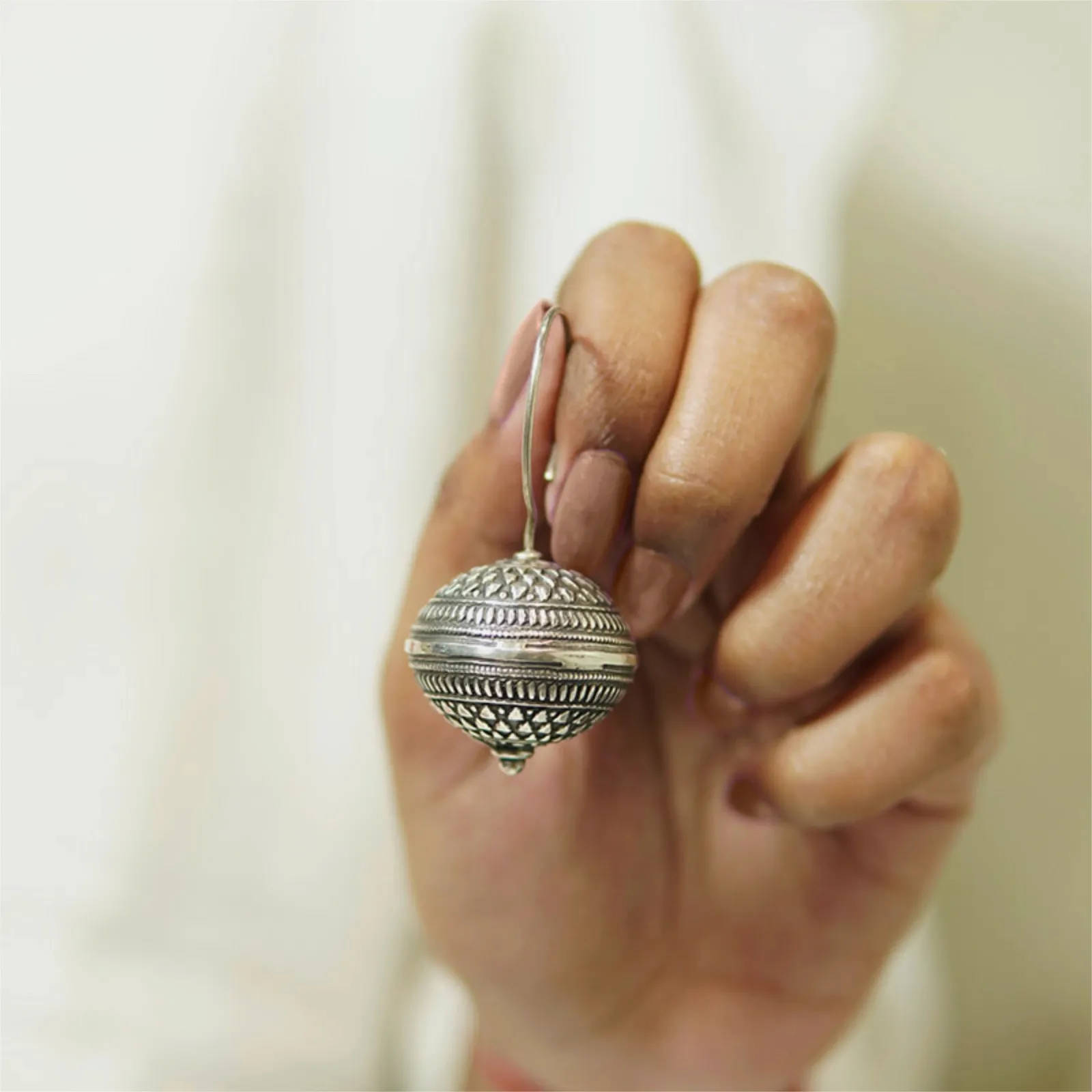 A perfect blend of tradition and artistry, these oxidized silver dome earrings bring the essence of Indian heritage into every detail. Handcrafted wit...