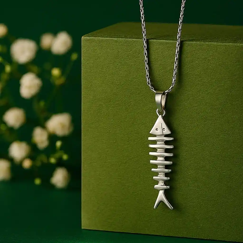 Add a quirky twist to your look with this handcrafted silver fishbone pendant chain. Designed with artistic precision, the pendant showcases a modern, minimalist charm while maintaining an antique silver finish. Perfect for those who love unique and creative jewellery that stands out effortlessly. Highlights: • Crafted in pure silver • Distinctive fishbone-inspired design • Oxidized finish for a rustic, edgy look • Lightweight and easy to style with any outfit • Ideal for casual wear or gifting