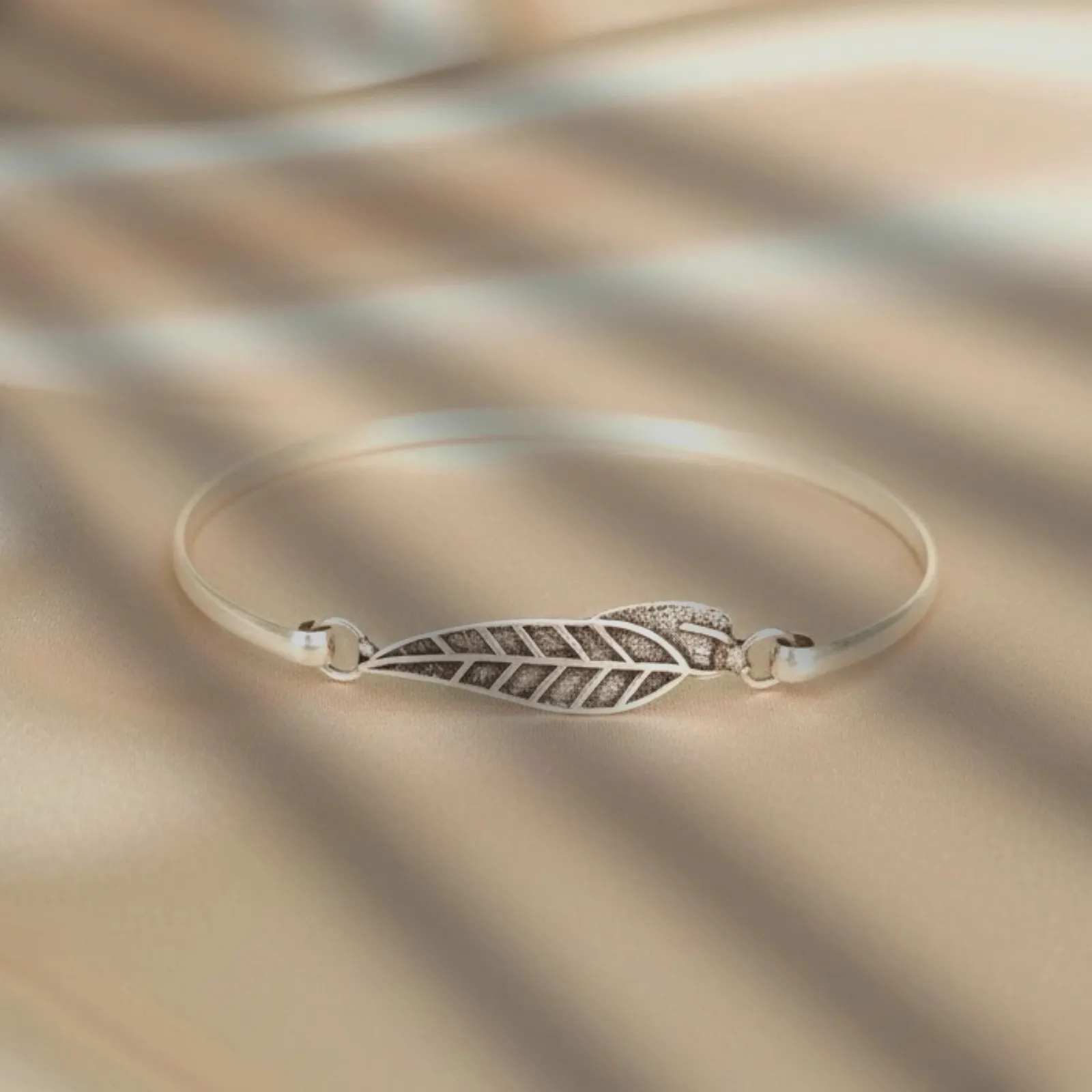 This delicate bracelet features a sleek band paired with a finely crafted leaf charm, giving it a soft, nature-inspired elegance. The subtle texture o...