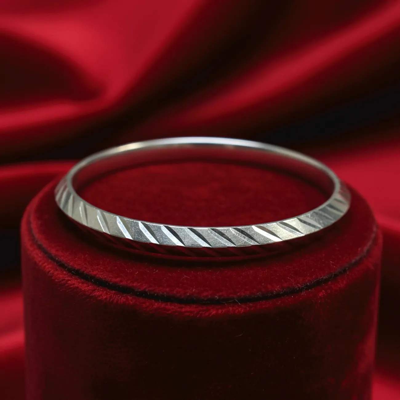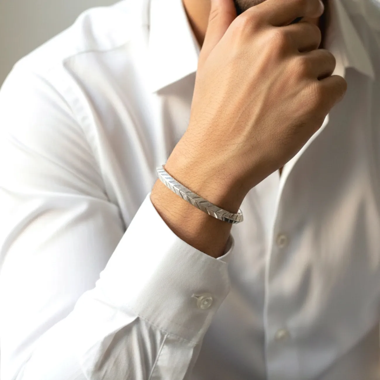Jewellery Type: Men’s Kadha (Kada) Metal: 925 Pure Sterling Silver Size: 2.4 Occasion: Daily Wear, Festive Wear, Gifting, Traditional Functions Style: Modern Minimal with Traditional Essence Product Features: Crafted in pure 925 sterling silver Unique diagonal engraved texture design Strong yet comfortable structure for daily wear Smooth inner finish for irritation-free use Elegant matte-gloss contrast for a premium look Durable craftsmanship ensuring long-lasting shine Ideal wrist statement for both ethnic and western outfits Care Instructions: Store in a dry, airtight jewellery box when not in use Avoid contact with perfumes, chemicals and water Clean gently with a soft silver polishing cloth Keep away from moisture to maintain shine