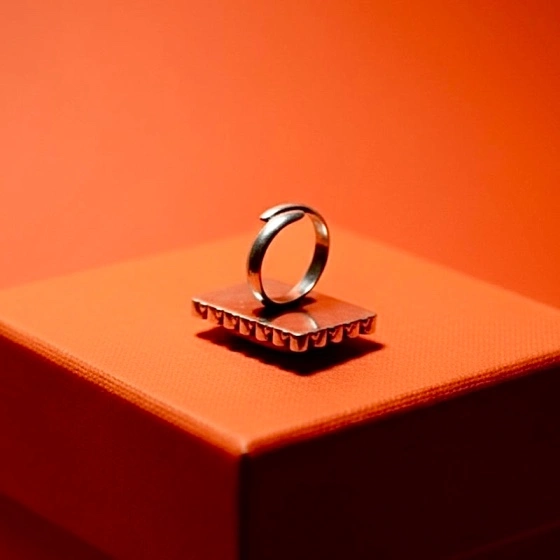 This elegant ring features a rectangular emerald stone bordered with sparkling white stones, set in pure silver. Its simple yet classy design pairs beautifully with both ethnic and modern outfits. Perfect for festive occasions or everyday style. Highlights: Crafted in pure silver Rectangular emerald stone with crystal border Lightweight and comfortable for all-day wear Suitable for festive, party, or casual looks
