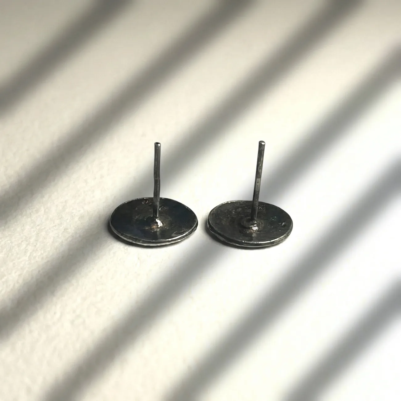 A pair of round antique-style studs featuring a deep black center highlighted by an intricate silver floral lattice pattern. The contrast between the dark base and the finely detailed metalwork creates a calm yet striking look. Minimal in size but rich in character, these studs are perfect for everyday elegance as well as understated festive wear. Dress pairing: • Handloom cotton kurtas, block-printed suits, monochrome sarees • Western outfits like black or white shirts, linen tops, subtle patterned dresses • Pairs beautifully with neutral, earthy, and monochrome palettes for a refined finish