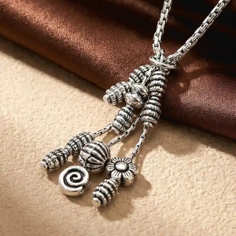 Jewellery Type: Necklace / Adjustable Chain Metal: 92.5 Sterling Silver Stone: None Occasion: Daily wear, festive styling, gifting Style: Contemporary ethnic, handcrafted, minimal-boho Product Description: Rooted in tradition and crafted for today, the Moon Drip Adjustable Silver Chain reflects the quiet elegance of Indian artistry. Each detail carries a sense of trust, heritage, and timeless beauty—perfect for women who value subtle expression over excess. This graceful silver chain features a delicate drop-style pendant with handcrafted bead and spiral elements, inspired by the calm rhythm of moonlight and movement.