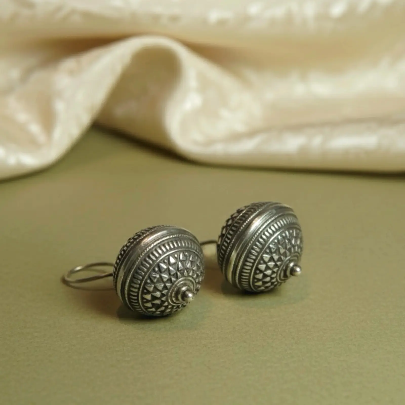 A perfect blend of tradition and artistry, these oxidized silver dome earrings bring the essence of Indian heritage into every detail. Handcrafted wit...